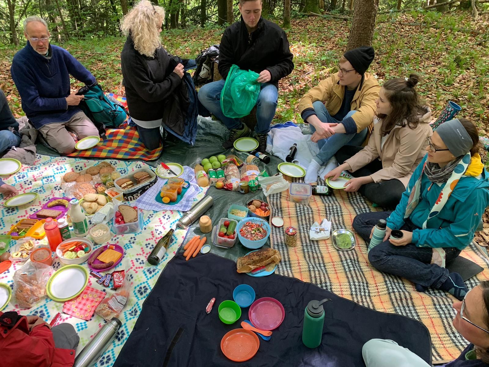 ein GET ( G emeinsames E ssen T eilen : jeder Teilnehmer bringt etwas Brotzeit mit z.B.: regional, saisonal, biologisch, vegan, vegetarisch ... wie Brot, Aufstrich, Gemüse, Obst, Nüsse, Gebäck, süßes, deftiges, selbst gemachtes ... es kann dann freiwillig mit der Gruppe geteilt werden ... wer mag kann auch eine kleine Geschichte dazu erzählen wie z.B. Leibgericht, bestimmtes Kulturgericht, aus einem anderen anderer Kulturkreis ... wie es gegessen wird ... etc. ) , ...
